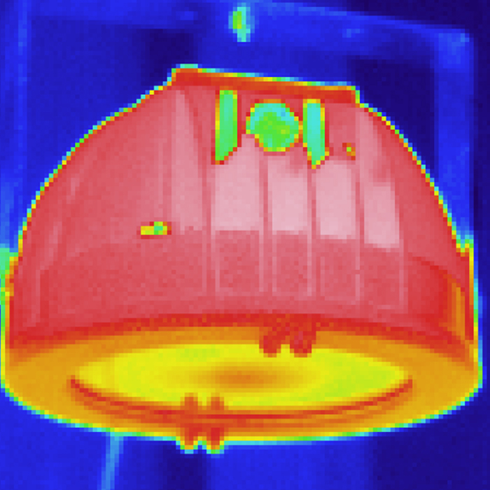From a mechanical point of view, the EVL series is characterized by a patented design: the body, made of aluminium alloy, is equipped with fins that act as a heat sink allowing a fast and effective dispersion of heat generated by the normal operation of the LED, as can be seen from the thermal imaging.