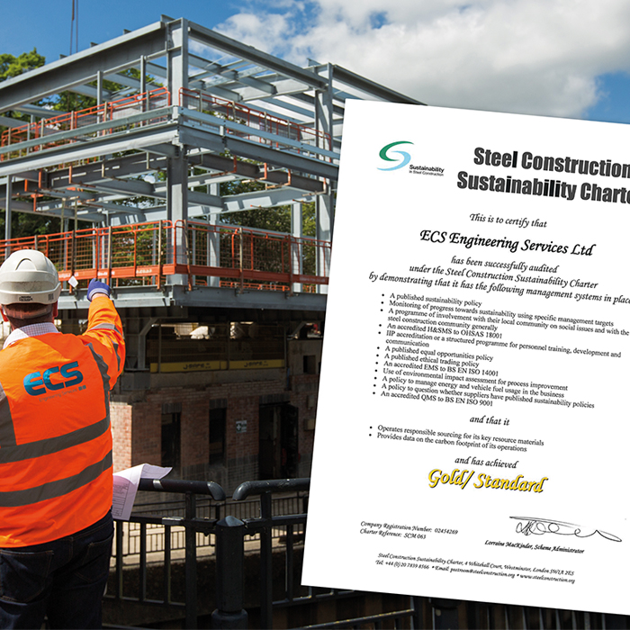 ECS Engineering Services has upgraded its British Constructional Steelwork Association’s (BCSA) Sustainability Charter to Gold, the highest standard, following a demanding audit of its management systems for environmental and social matters.